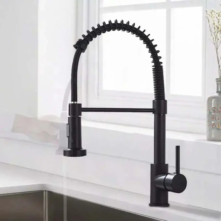 Baterie Bucatarie cu Dus Extractibil, Inox si Alama Negru, YD/102