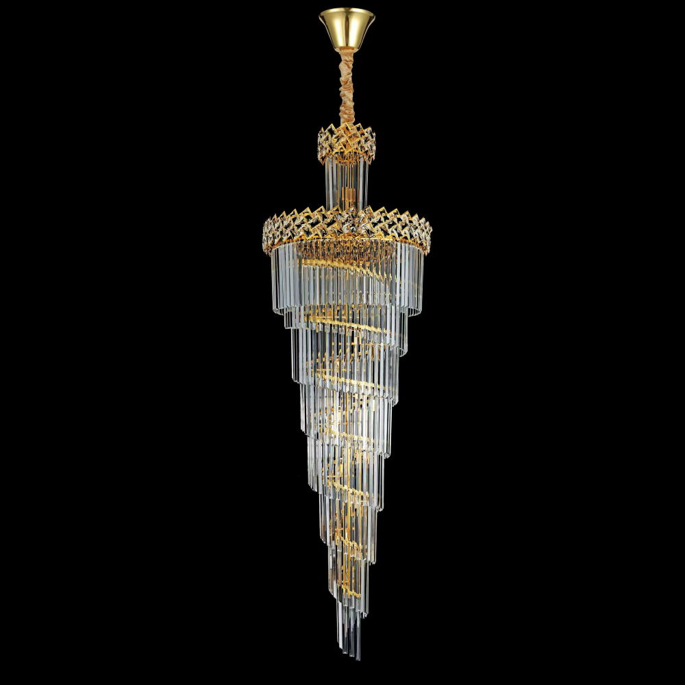 Adauga o nota de rafinament si spectaculozitate in incaperile cu tavane inalte cu Candelabrul Cristal WINDSOR Altiora, creat special pentru scari interioare, holuri ample sau zone de living aerisite cu design arhitectural grandios. ✔️ Diametru: 60 cm ✔️ Inaltime corp: 180 cm ✔️ Materiale: metal auriu lucios + cristale decorative transparente ✔️ Recomandat pentru: scari interioare, holuri deschise, spatii cu tavan inalt, receptii elegante Designul sau impunator pe verticala transforma acest candelabru intr-un punct focal captivant. Cristalele amplasate cu precizie reflecta lumina intr-un joc armonios de scantei, in timp ce finisajul auriu lucios adauga o senzatie de opulenta si rafinament. WINDSOR Altiora este alegerea ideala pentru cei care doresc sa lumineze cu stil si eleganta incaperi de proportii generoase. Cu inaltime reglabila prin lantul inclus, candelabrul se adapteaza perfect oricarui context decorativ.
