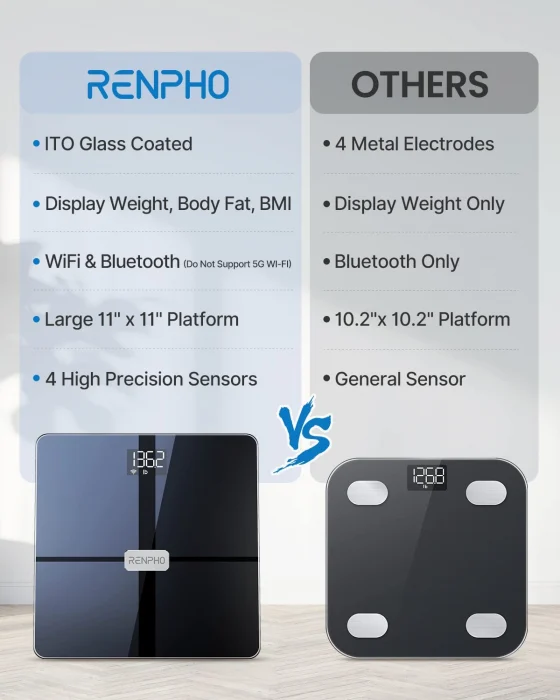 Cantar de baie Smart Renpho WBE28, Wifi, Bluetooth, Maxim 180Kg, 13 masuratori, BMI, Compatibil cu Samsung Health, Apple Health, Google Fit and Fitbit sync.