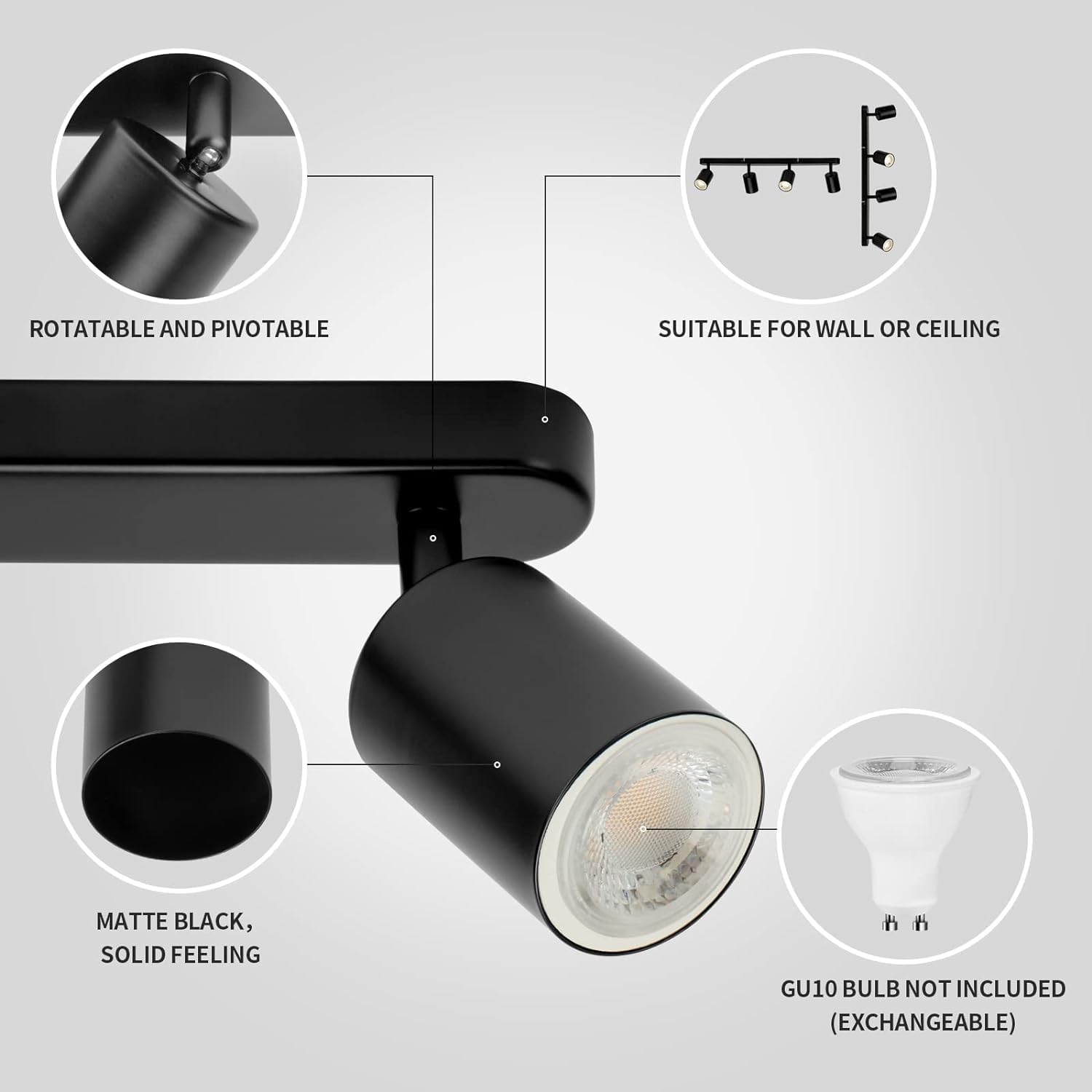 Lustra Clasica Moderna, LC500/4BK cu Proiector Liniar, 4XGU10, Metal, Negru, Becuri Neincluse