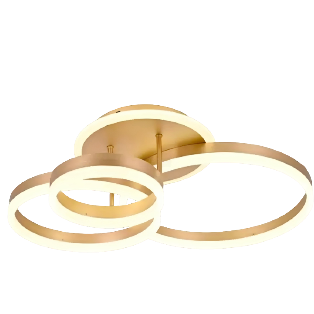 Lustra LED cu telecomanda RIGA LILITH 68W, 3 Cercuri, lumina Rece/Calda/Neutra, Dimabila, Auriu Lucios
