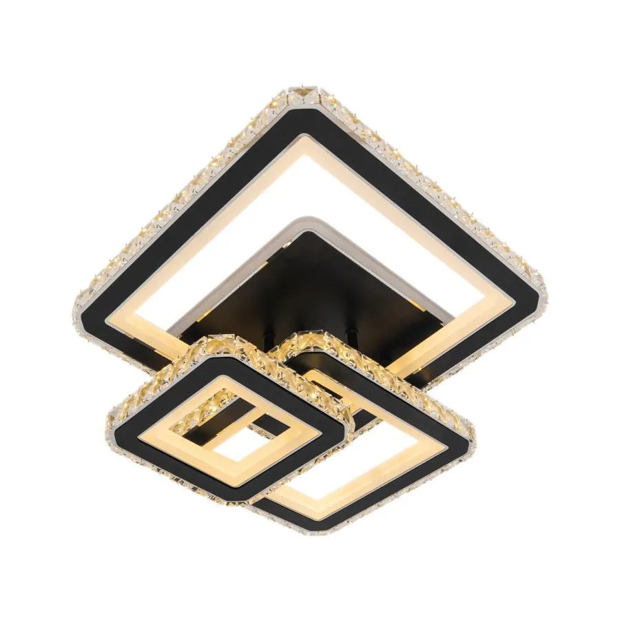 Lustra LED cu telecomanda si cristal LEILA 88W, 3 Patrate, lumina Rece/Calda/Neutra, Dimabila, Negru Crom Lucios