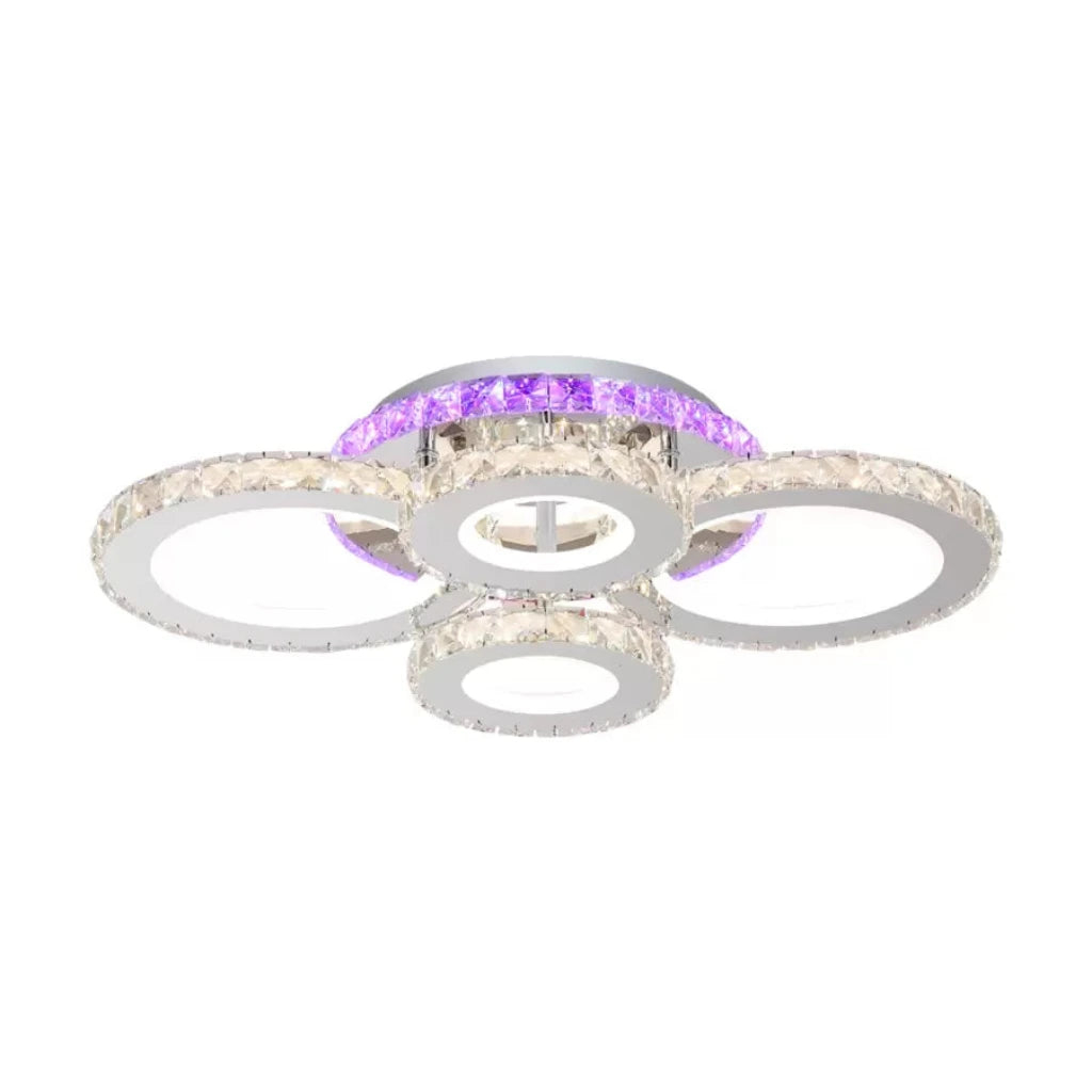 Adauga un accent contemporan si elegant spatiului tau cu lustra LED Nova Rotonda, o piesa ce imbina designul modern cu detalii pretioase din cristale. Cele 4 surse principale de lumina LED asigura o iluminare eficienta, iar sursa RGB ambientala integrata creeaza un joc de lumini colorate spectaculos, perfect pentru a schimba atmosfera unei incaperi printr-o simpla apasare de buton. ✔️ Dimensiuni: 45x32x22 cm ✔️ Putere: 82W ✔️ Iluminare: 4 surse LED + 1 sursa RGB ambientala ✔️ Lumina: Rece / Calda / Neutra + RGB ✔️ Control: Telecomanda inclusa pentru schimbarea culorii si intensitatii ✔️ Materiale: metal finisat crom lucios + cristale acrilice ✔️ Potrivita pentru: living modern, dormitor, hol, birou, camera de zi Lustra Nova Rotonda este alegerea ideala pentru cei care doresc nu doar iluminare, ci si ambienta vizuala spectaculoasa, fara lanturi, montaj aplicat direct pe tavan. Adauga stil si tehnologie inteligenta in caminul tau cu acest corp de iluminat sofisticat!