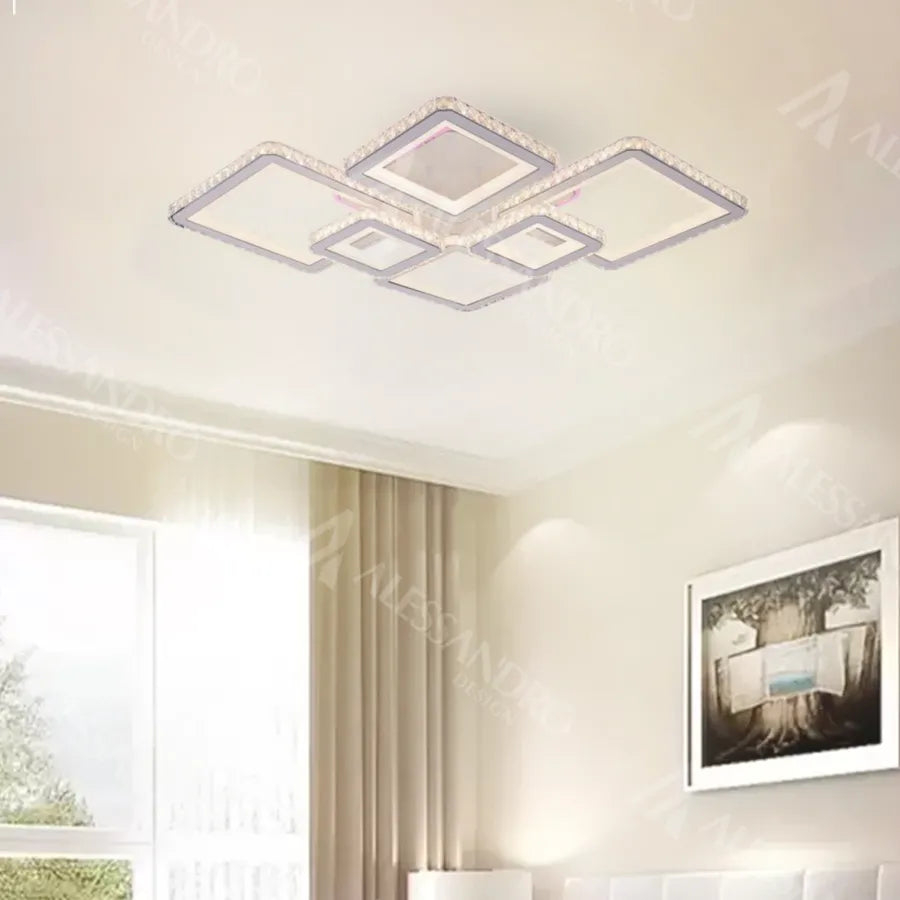Ilumineaza-ti spatiul cu geometrie moderna si un spectru vibrant de culori cu Lustra LED RGB cu Telecomanda QUADRIS. Aceasta plafoniera LED impresionanta imbina un design arhitectural distinctiv cu tehnologia avansata RGB, oferindu-ti control total asupra atmosferei din incapere. Compusa din 6 patrate luminoase dispuse intr-o maniera moderna si dinamica, lustra QUADRIS devine un punct focal captivant in orice interior contemporan. Finisajul alb elegant ii confera un aspect curat si versatil. Cu o putere totala de 175W, lustra QUADRIS ofera o iluminare ampla si uniforma, perfecta pentru livinguri mari, open space-uri sau sali de dining moderne. Experimenteaza cu lumina rece, calda sau neutra pentru a adapta iluminatul la activitatile tale zilnice. Dar adevarata inovatie consta in functia RGB, care iti permite sa alegi dintr-o paleta extinsa de culori si efecte dinamice. Transforma instantaneu atmosfera camerei in functie de starea ta de spirit sau de ocazie, de la o lumina ambientala relaxanta la un spectacol vibrant de culoare. Functia dimmabila iti ofera control precis asupra intensitatii luminoase, de la o stralucire puternica la o lumina subtila si intima. Iar cu telecomanda inclusa, poti ajusta culoarea, temperatura de culoare, intensitatea si efectele de lumina confortabil, de pe canapea sau din orice colt al camerei. Caracteristici Cheie: Design Geometric Modern: Compusa din 6 patrate luminoase dispuse dinamic. Iluminare Puternica: 175W pentru o lumina ampla si uniforma. Tehnologie RGB: Paleta extinsa de culori si efecte dinamice pentru atmosfera personalizata. Temperatura Culoare Variabila: Lumina rece, calda sau neutra, adaptabila nevoilor tale. Functie Dimmabila: Ajusteaza intensitatea luminoasa cu telecomanda. Telecomanda Inclusa: Control total asupra tuturor functiilor lustrei. Material Durabil: Acril de inalta calitate si structura robusta. Stil Versatil: Ideala pentru interioare moderne, minimaliste sau futuriste. Beneficii: Creeaza un Punct Focal Modern si Impresionant: Designul geometric si lumina vibranta atrag toate privirile. Ofera o Iluminare Extrem de Versatila: Adapteaza culoarea, temperatura si intensitatea luminoasa la orice ocazie. Personalizeaza Atmosfera: Transforma instantaneu spatiul cu efectele RGB dinamice. Control Total si Confortabil: Telecomanda intuitiva face ajustarile simple si rapide. Eficienta Energetica LED: Consum redus de energie si durata de viata lunga. Lustra LED RGB cu Telecomanda QUADRIS este alegerea perfecta pentru a aduce un plus de modernitate, culoare si dinamism in spatiul tau. Experimenteaza cu lumina si transforma fiecare moment intr-o experienta vizuala unica!