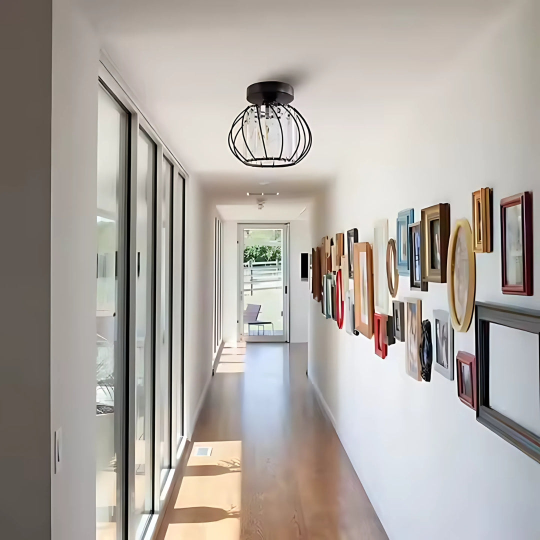 Lustra Monica nu este doar un corp de iluminat, ci o piesa de design sofisticata, conceputa sa creeze un joc spectaculos de umbre si lumini, aducand o nota de mister si eleganta contemporana. Design Fascinant, Efect Vizual Unic: Abajurul sau, realizat dintr-o retea intricate de metal negru, inconjoara un difuzor de lumina discret, proiectand pe tavan o explozie de raze luminoase ce captiveaza privirea si extinde vizual spatiul. Ambianta Intima, Lumina Definitorie: Echipata cu un soclu E27, Lustra Monica ofera o lumina ambientala calda si primitoare, ideala pentru a defini un hol, o zona de trecere sau un colt de lectura, creand o atmosfera de bun venit si rafinament. Prezenta Compacta, Impact Maxim: Inaltimea de 16 cm este eficienta si estetica fara a incarca vizual spatiul. Aceasta lustra nu doar lumineaza, ci modeleaza spatiul cu un joc de lumina si umbra, transformand orice hol intr-un punct de atractie cu stil si personalitate. *Becurile nu sunt incluse!