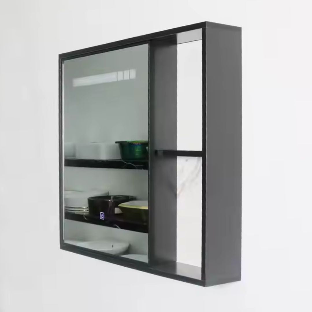 Varianta de 80cm a setului CRETA este solutia completa pentru baile de dimensiuni medii si mari, unde spatiul permite un mobilier cu impact vizual si functionalitate sporita. Setul elimina complet efortul de a asorta piese diferite. Designul suspendat pastreaza avantajul curateniei usoare a pardoselii. Datorita latimii de 80cm, spatiul de depozitare din spatele celor doua usi este considerabil mai generos, iar blatul extins ofera o suprafata de lucru suplimentara, foarte practica, langa lavoarul integrat. Punctul de atractie tehnologic este oglinda de dimensiuni ample, care nu doar completeaza setul, ci si mareste vizual incaperea. Iluminarea LED se activeaza la fel de simplu, printr-un comutator tactil (touch) integrat direct pe suprafata sa. Nota: Bateria de lavoar si accesoriile din imagine au rol de prezentare si nu sunt incluse in pachet.