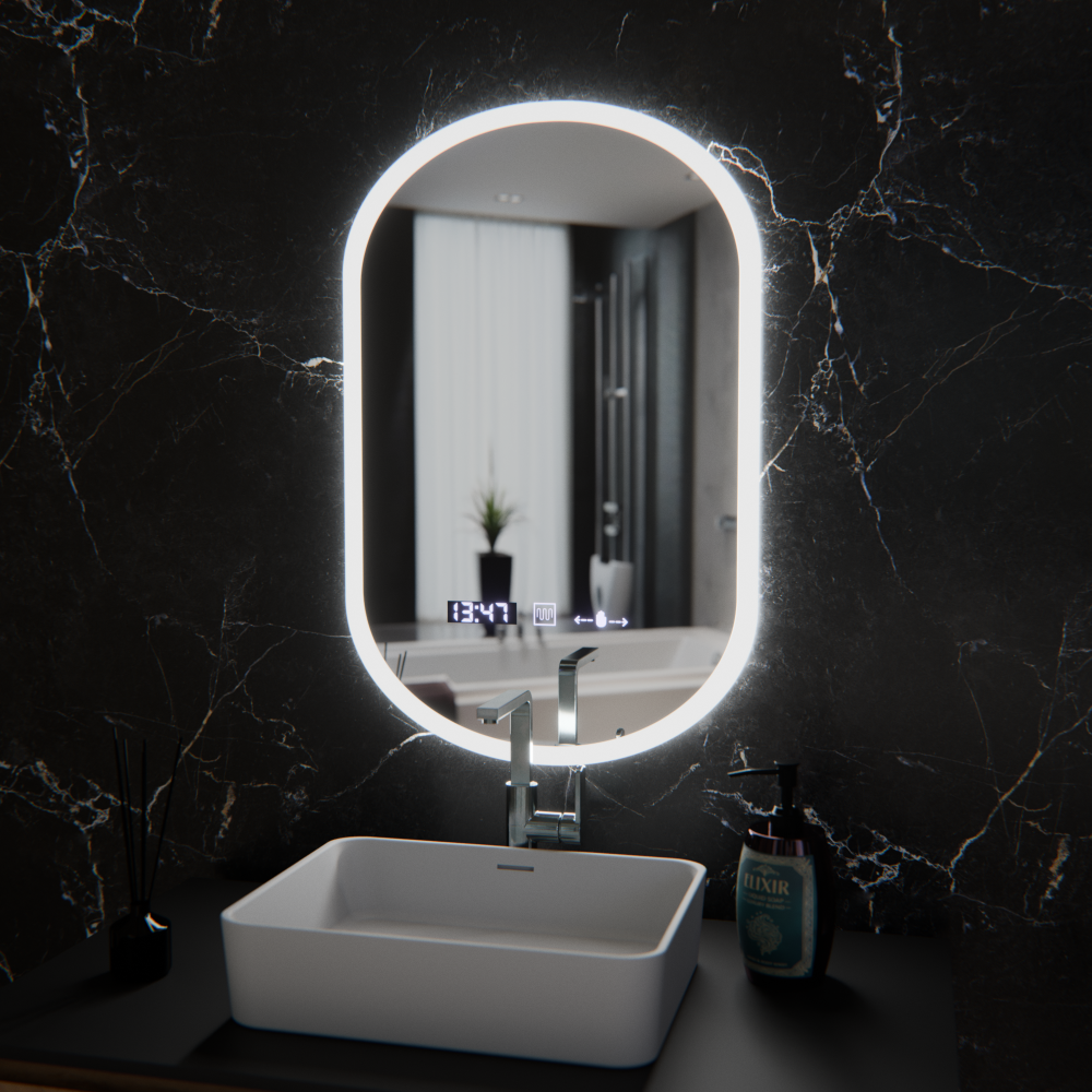 Oglinda LED ovala Lucia Senzor Marcello, 50x80 cm, sistem dezaburire, ceas si termometru, dimabila Oglinda LED ovala Lucia Senzor Marcello, cu dimensiunea de 50x80 cm, este ideala pentru bai moderne, unde functionalitatea avansata se imbina cu un design elegant. Forma ovala adauga un plus de rafinament si se integreaza usor in diverse stiluri de amenajare. Iluminarea LED dimabila permite reglarea intensitatii luminii in functie de preferinte si necesitati. Activarea prin senzor ofera utilizare comoda, fara atingere, iar sistemul de dezaburire mentine oglinda clara chiar si dupa dus. Oglinda este dotata cu ceas digital si termometru, informatiile fiind afisate discret, pentru un plus de confort in rutina zilnica. Consum redus de energie, iluminare uniforma si finisaje de calitate, pentru un produs practic si estetic, potrivit utilizarii zilnice in baie. Oglinda LED Ovala 50x80 cm LUCIA – Marcello impresioneaza prin liniile sale fluide si tehnologia discret integrata. Dotata cu senzor de activare, iluminare LED dimabila si functii inteligente precum dezaburirea, ceasul si termometrul digital, LUCIA este alegerea perfecta pentru un spatiu modern, functional si rafinat.