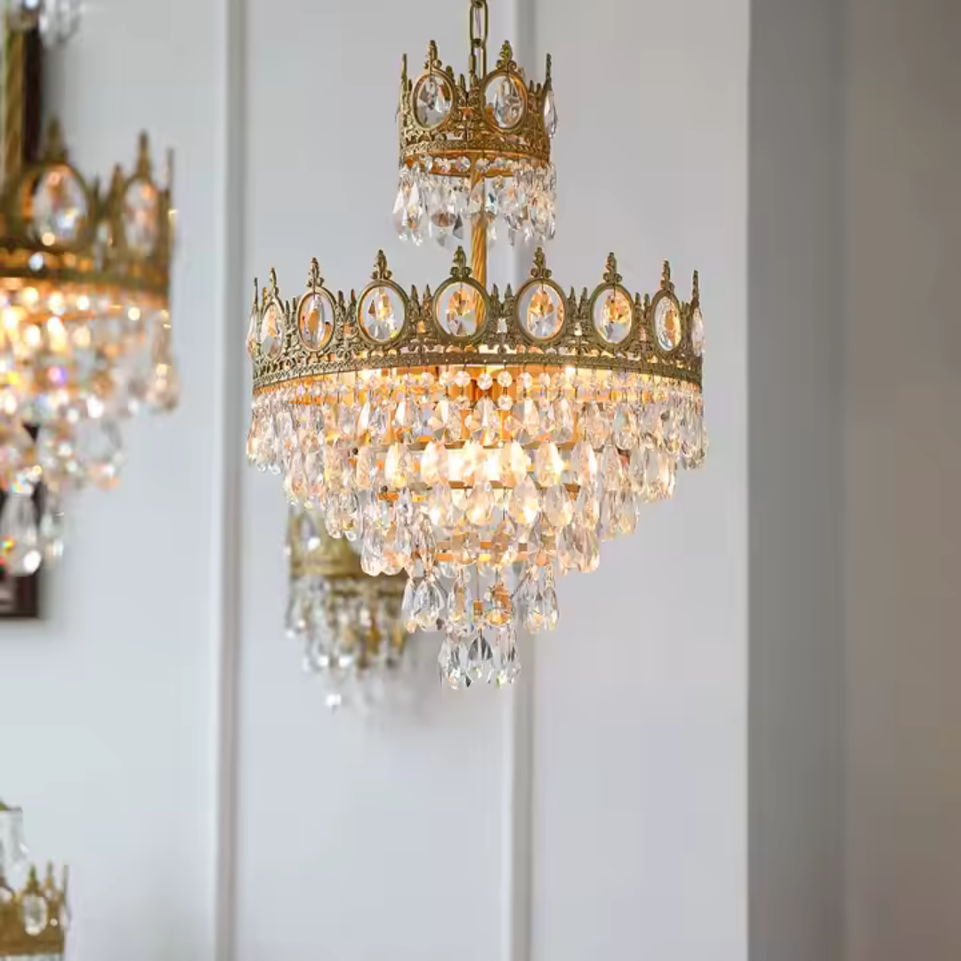 Acest candelabru Cristal REGALITE Petito emana o eleganta rafinata prin combinatia dintre finisajul auriu lucios si stralucirea cristalina. Cu un diametru de 45 cm, este o piesa statement potrivita pentru a adauga o nota de lux in spatii nu foarte mari. Cele sase brate ale candelabrului sunt decorate cu elemente din cristal transparent, atent slefuite pentru a maximiza refractia luminii. Aceste cristale, impreuna cu finisajul auriu lucios al structurii, creeaza un efect vizual captivant, aducand o atmosfera sofisticata si calda in incapere. Conceput pentru 8 becuri de tip E14, candelabrul REGALITE Petito ofera o iluminare placuta si eficienta. In plus, inaltimea sa reglabila permite adaptarea perfecta la inaltimea tavanului, asigurand o integrare armonioasa in diverse tipuri de spatii. Acest candelabru este ideal pentru livinguri, dormitoare sau zone de luat masa unde se doreste un accent de eleganta clasica, cu o nota de stralucire data de cristale si finisajul auriu.